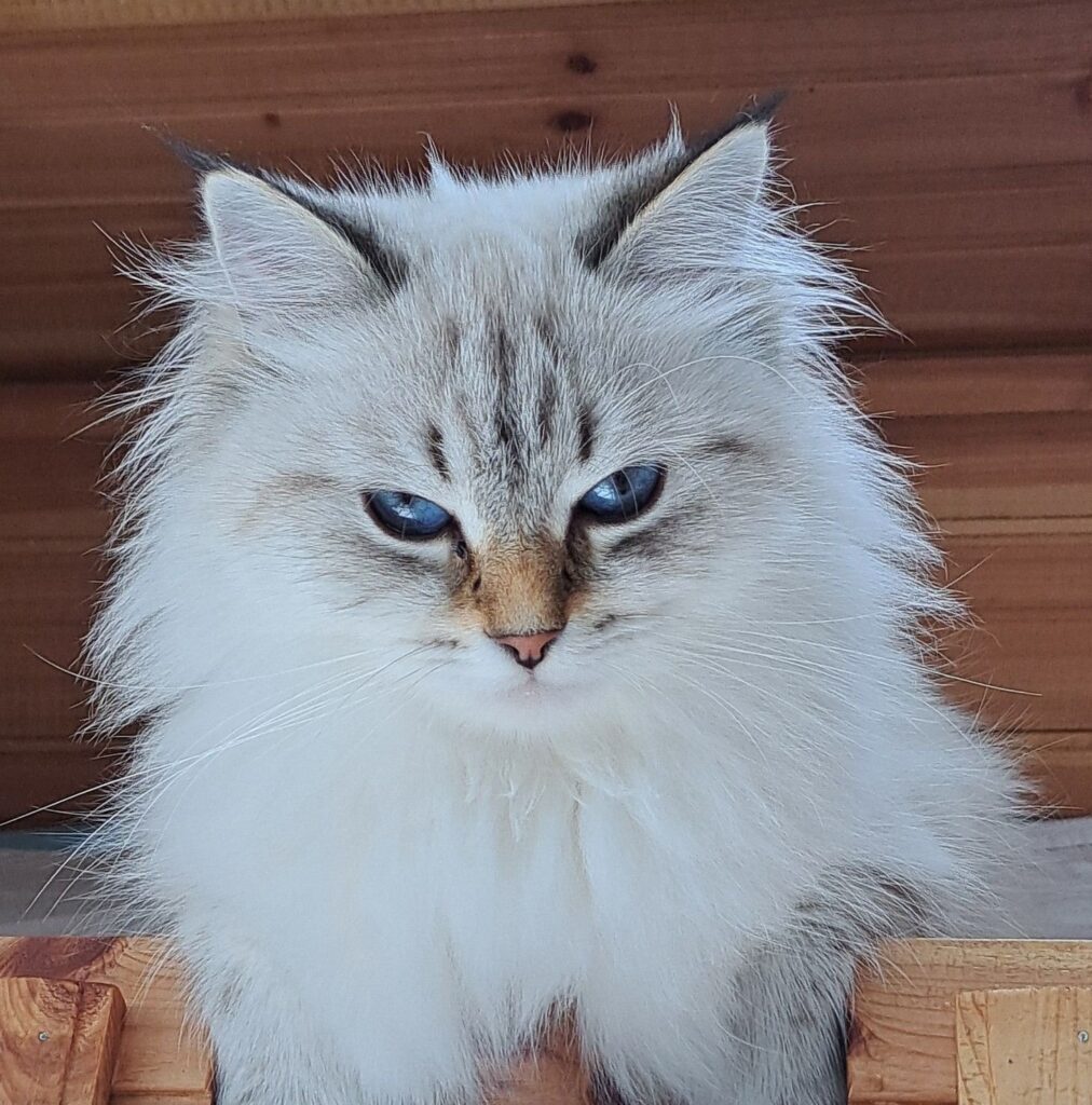 Amy comes from the very first, foundation litter of our cattery. Her parents are Klementyna and Zoltan. What made us decide to keep her was, among other things, her deep, intense blue eye colour, which she also passes on to her kittens.